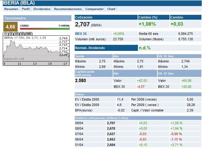La imagen de arriba, el análisis gráfico de la cotizacion de Iberia el pasado viernes, también toda este valor para realizar su analisis.