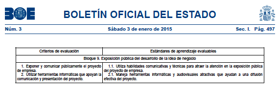 Recordemos que con la LOMCE será criterio de evaluación la exposición pública del proyecto de empresa.