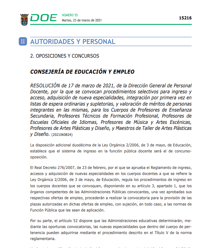 Esta mañana se ha publicado la convocatoria de las oposiciones de este 2021 en Extremadura.
