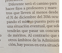 También comenta que pocas plazas en educación tendrán la característica de estructurales para sacar directamente a concurso sin oposición.