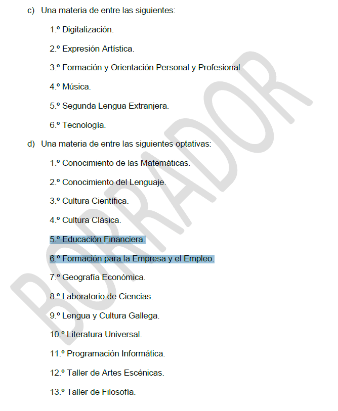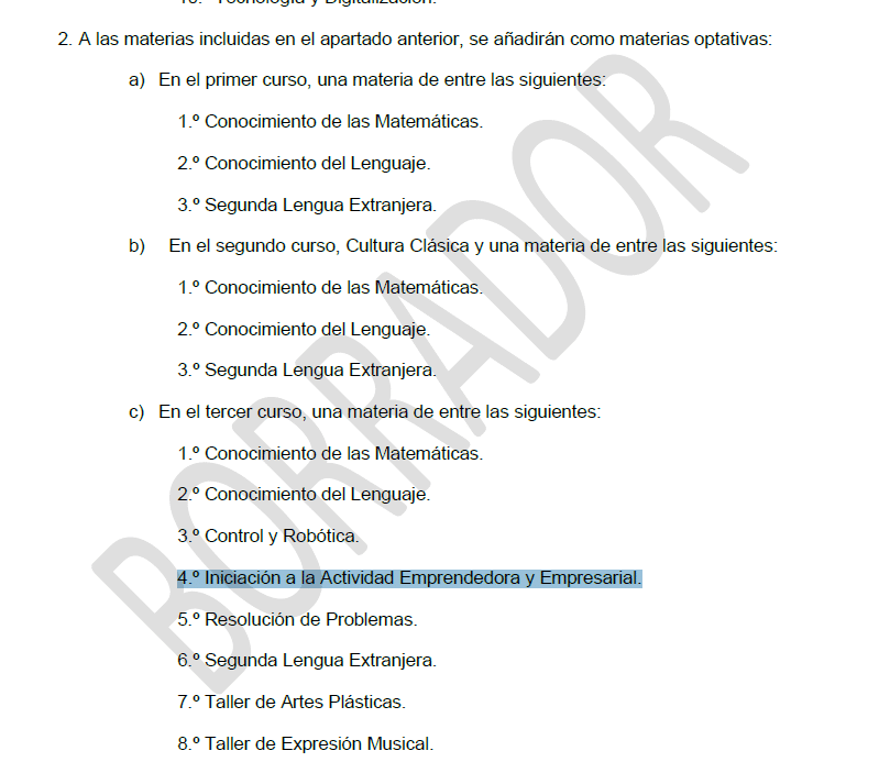 En 4º ESO se mantiene «Educación Financiera» (2 horas) y aparece «Formación para la Empresa y el Empleo» (2 horas). Economía y Emprendimiento tendrá 4 horas lectivas semanales.