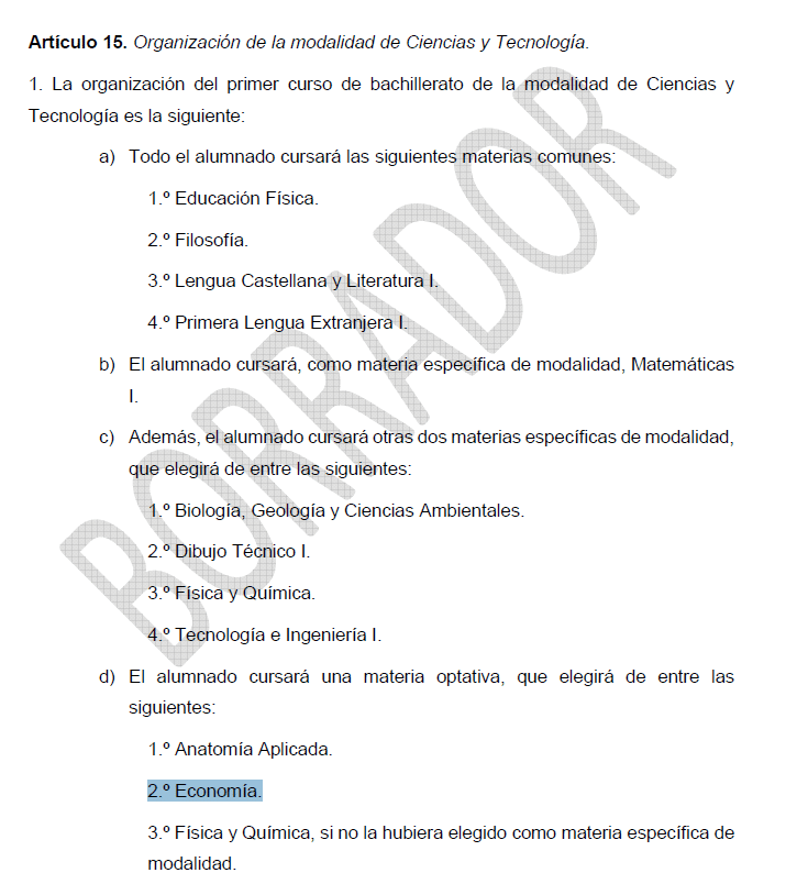 - En el bachillerato de Ciencias y Tecnología pueden elegir Economía