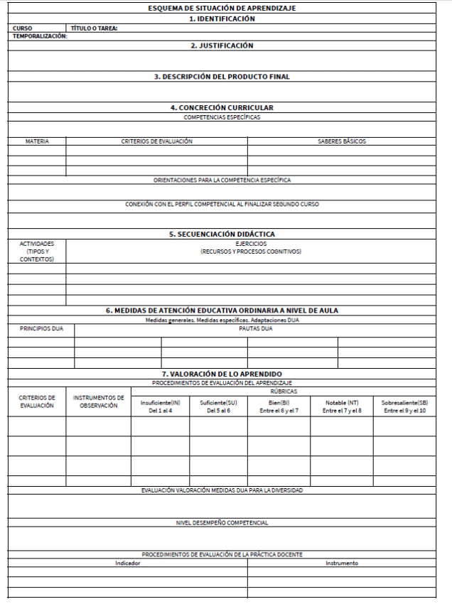 Esto va a ser muy importante, ya que está en el BOE LOMLOE de bachillerato y las administraciones autonómicas lo recogerán en sus normativas. Así, Andalucía, en sus instrucciones LOMLOE de bachillerato incluye el DUA (principios y pautas) en el esquema de Situación de aprendizaje (punto 6)
