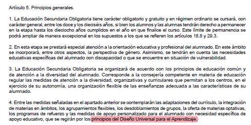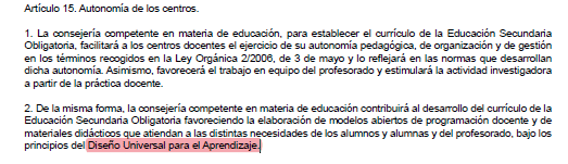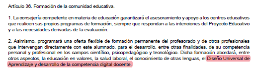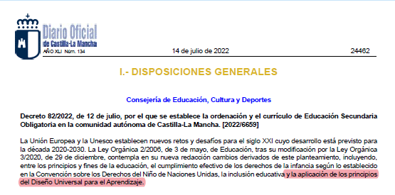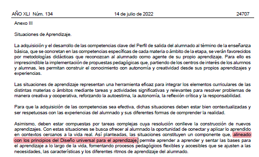 Como era de esperar y comenté ayer, se insiste en el DUA (Diseño universal para el aprendizaje)