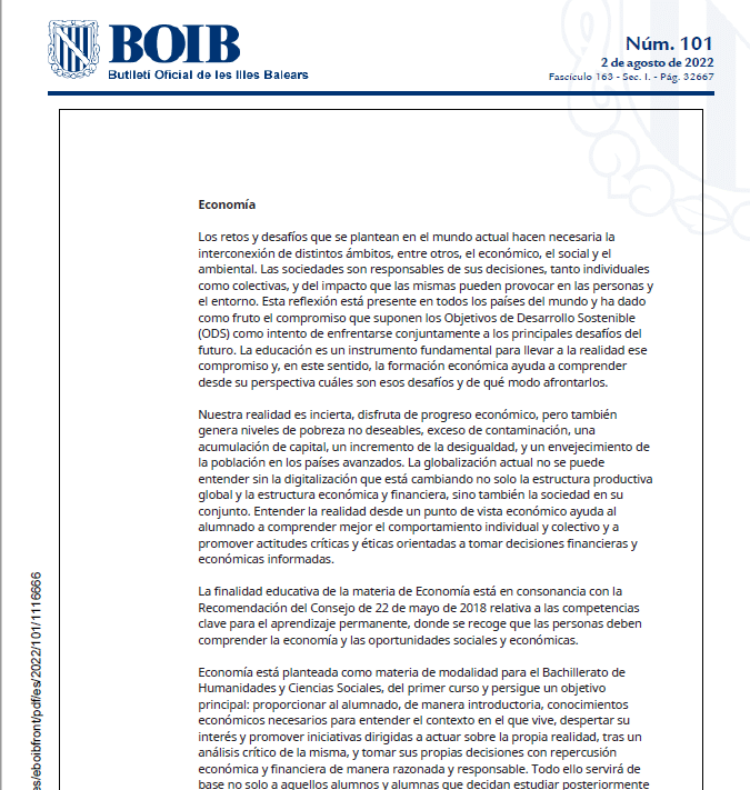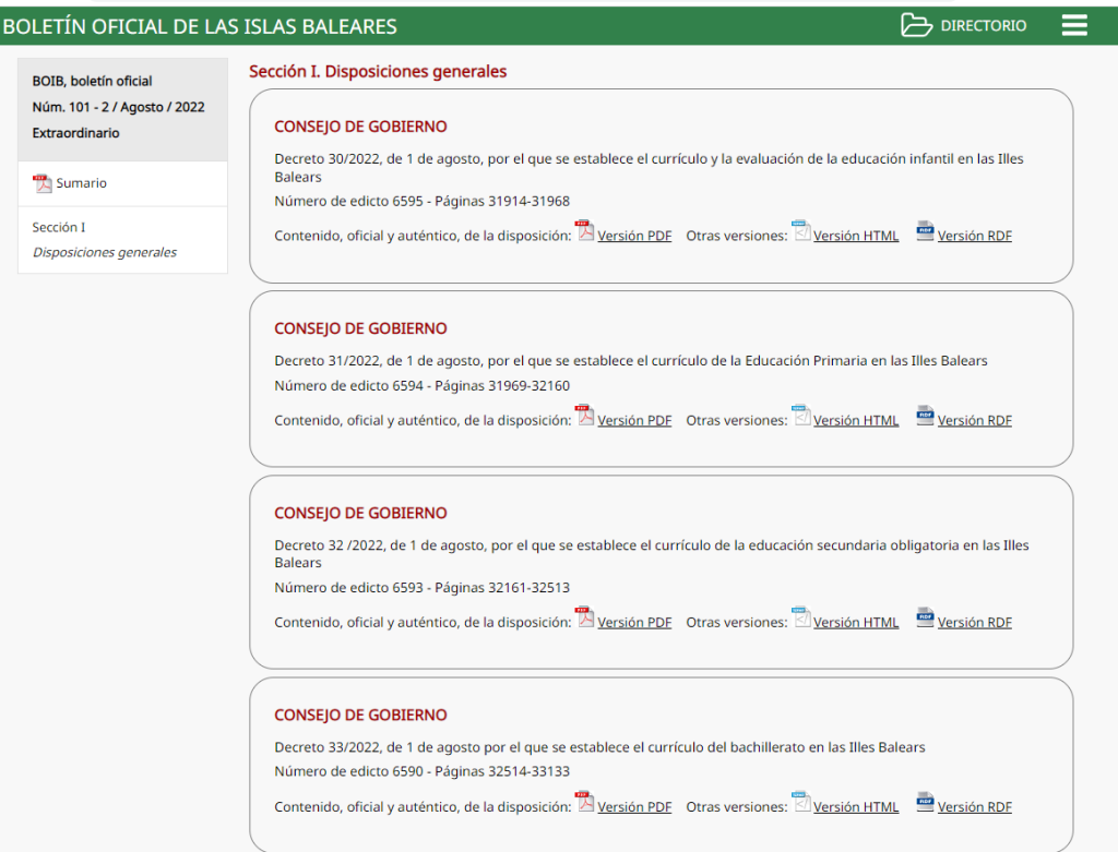 Decreto 33/2022, de 1 de agosto por el que se establece el currículo del bachillerato en las Illes Balears