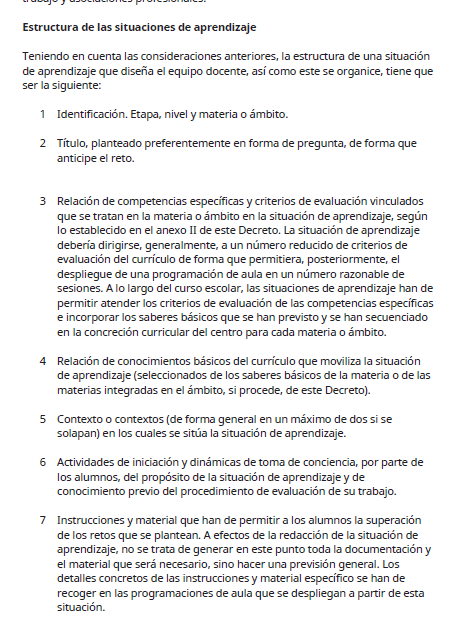 Desde el punto de vista de las situaciones de aprendizaje, en el anexo III las desarrollan y plantean una estructura: