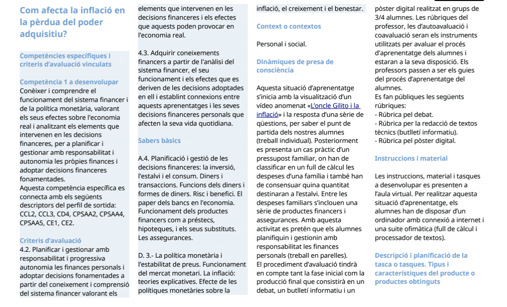 El Gobierno Balear había publicado ya unos modelos de situación de aprendizaje por especialidad, que no tiene nada que ver con los publicados por ejemplo en Andalucía.