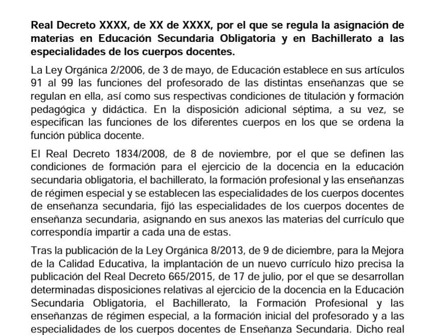 Como todo en la LOMLOE se ha hecho no solo mal…sino tarde. Así, está en borrador desde junio el nuevo Real Decreto de atribución docente LOMLOE.