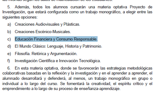 Aparece una optativa (proyecto de investigación) de Educación y financiera y Consumo Responsable (2 horas):
