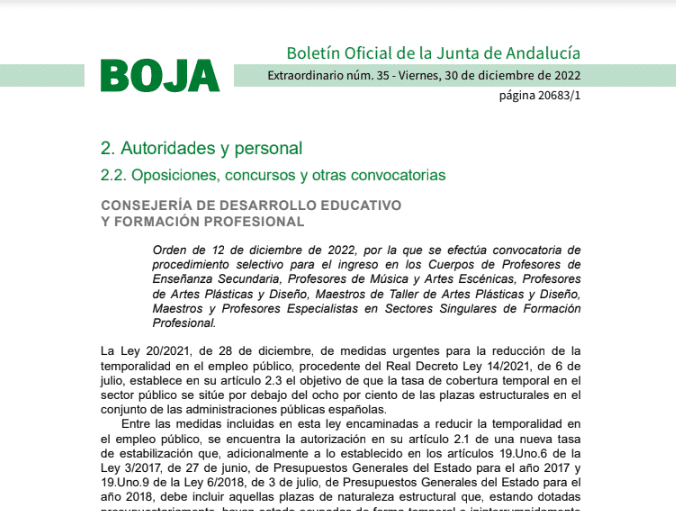 Ya tenemos también la convocatoria de plazas de estabilización por concurso oposición de Andalucía.