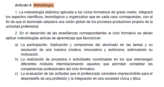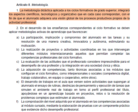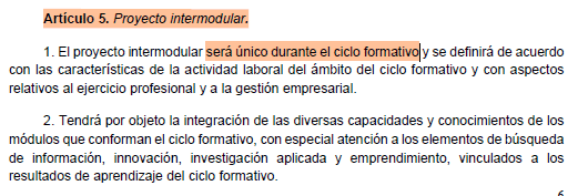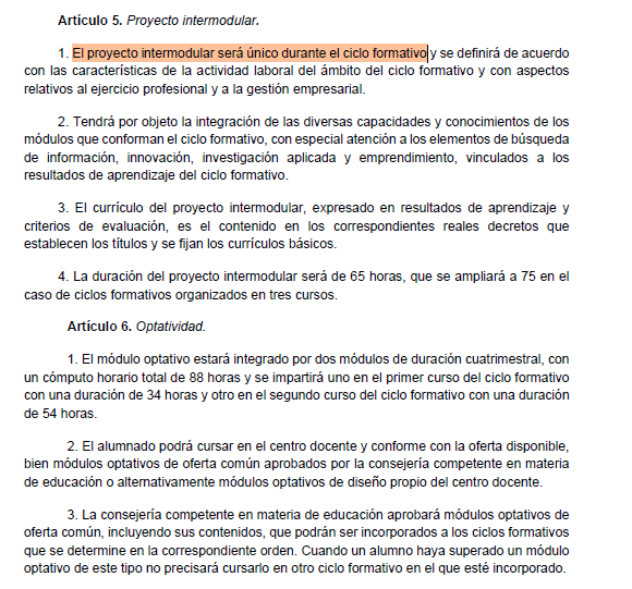- El proyecto intermodular será «único» durante el ciclo formativo. Remite de nuevo al BOE.