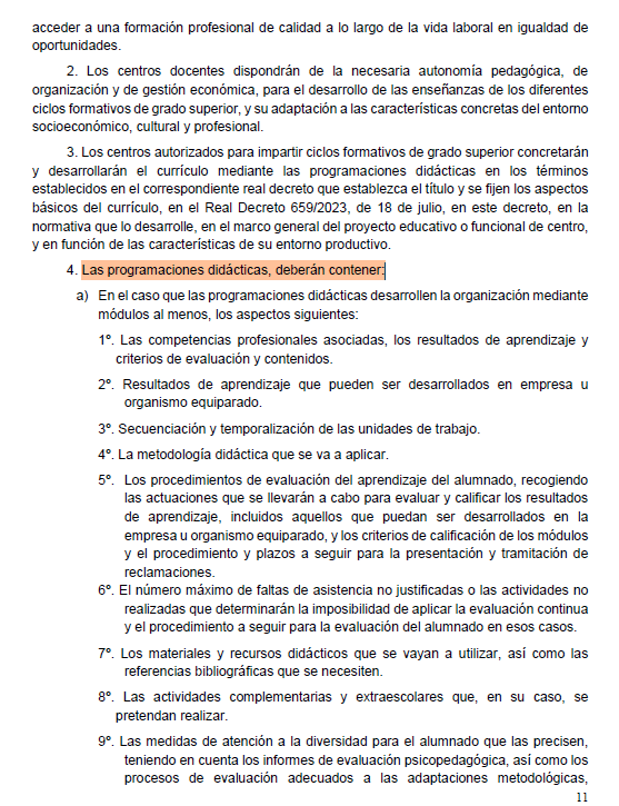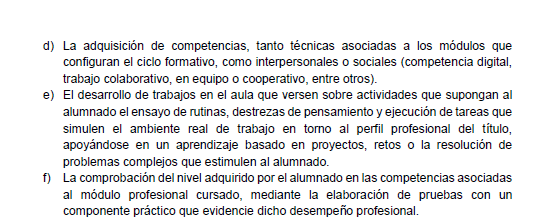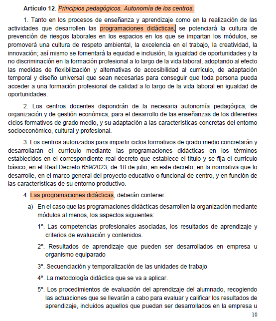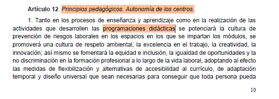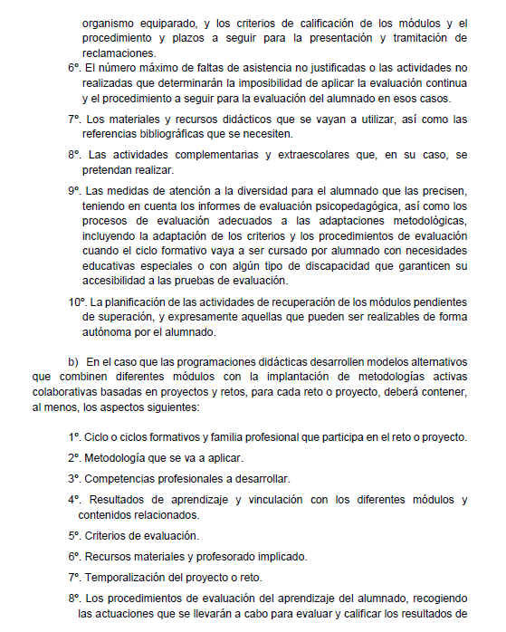 - Principios pedagóticos, hace refrencia a las programaciones didácticas.