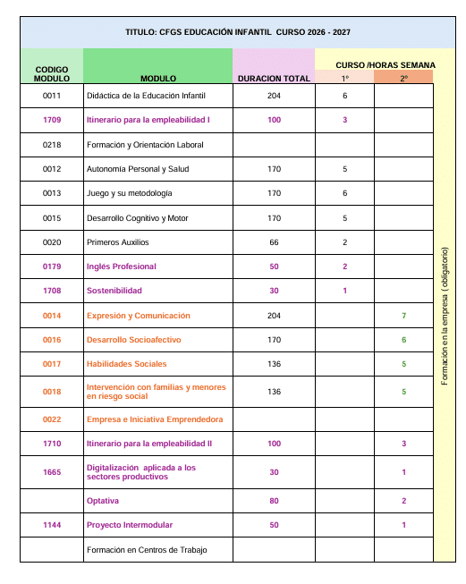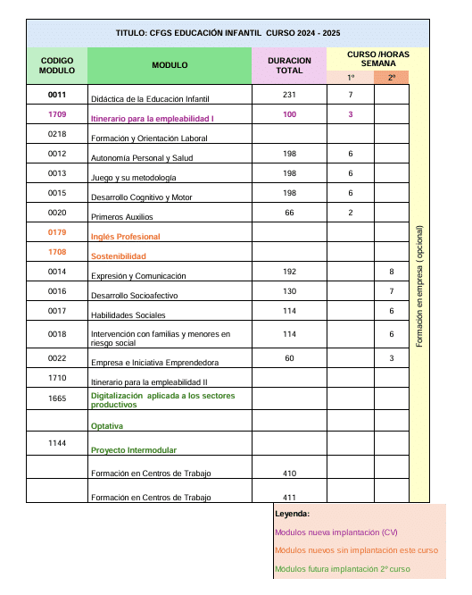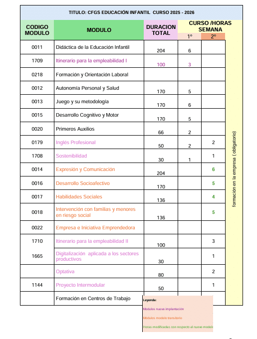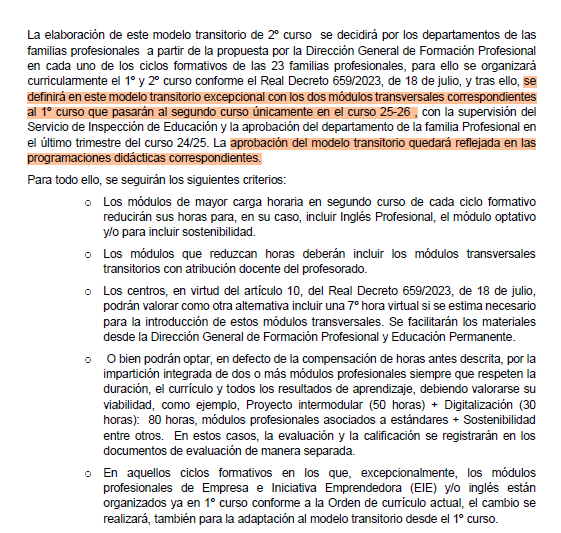 - Modelo transitorio: los módulos transversales estarán en primer curso, pero transitoriamente se impartirán en segundo en 25-26.