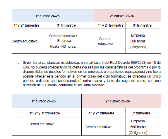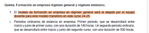 - Se impone para curso 24-25 formación en la empresa en régimen general, estando la formación en la empresa en el tercer trimestre…
