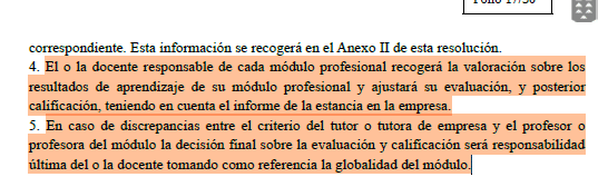 - Evaluación conjunta del profesor y tutor de la empresa. En caso de discrepancia, impera la decisión del profesor.