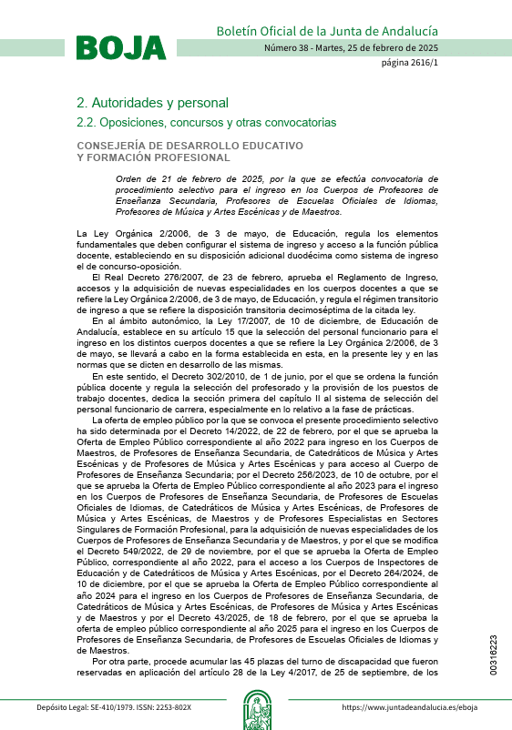 Hoy mismo se ha publicado en el BOJA la convocatoria de las oposiciones de secundaria de Andalucía de este 2025.