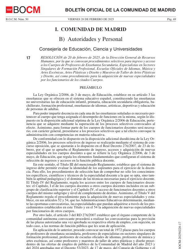 Hoy mismo se ha publicado la convocatoria de las oposiciones de secundaria de este 2025 de la Comunidad de Madrid.