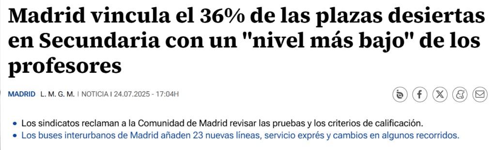 Madrid siempre se ha caracterizado por unos exámenes duros de oposiciones de secundaria y unas fuertes cribas, pero este año más de un tercio de las plazas han quedado desiertas.