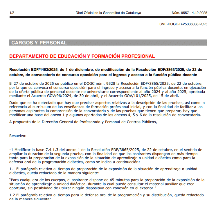 Por otro lado, Cataluña ha publicado la siguiente resolución para corregir un par de aspectos de la convocatoria de sus oposiciones de 2026.