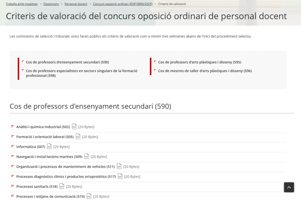 Por otro lado, recordemos que Cataluña ya había publicado su convocatoria en octubre, dando comienzo el proceso el cercano 7 de marzo. Acaban ahora de publicar los criterios de valoración.
